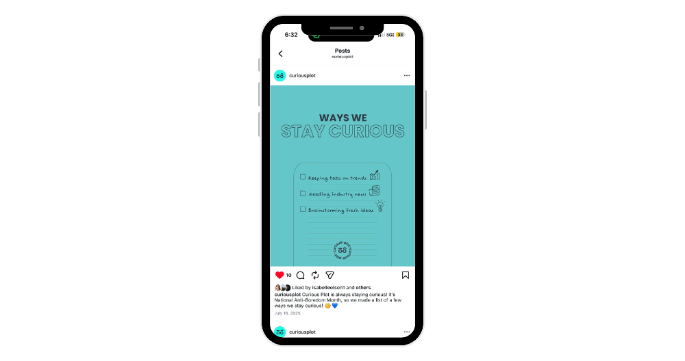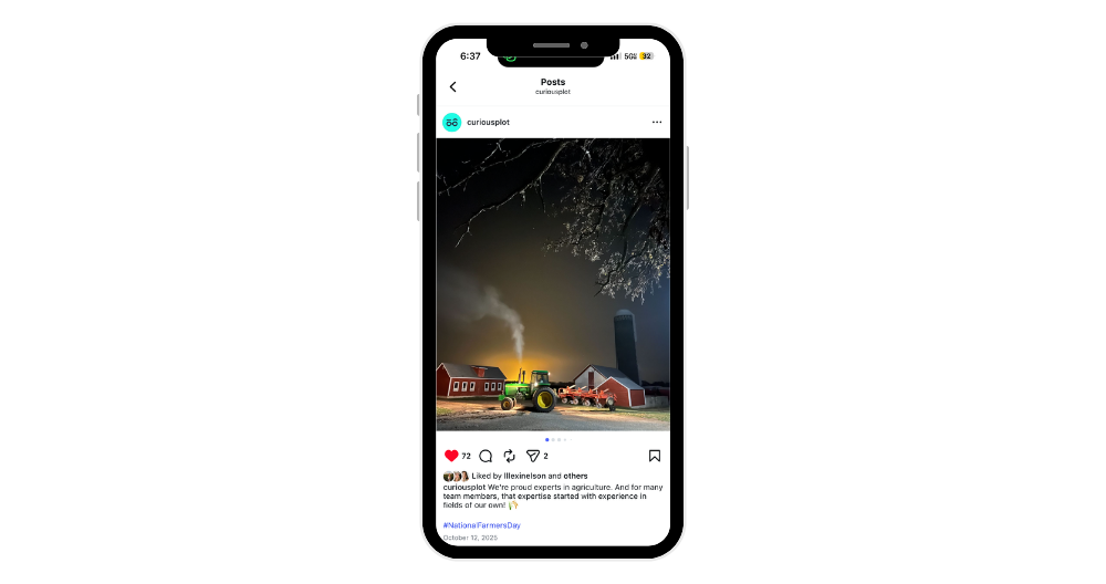 I chose to work at Curious Plot because it perfectly blends my passion for marketing with my lifelong connection to agriculture and food systems. Growing up on a farm and watching my grandpa continue to farm today shaped my appreciation for these industries and the people behind them. Curious Plot’s commitment to chasing greatness and delivering real results for clients in food, agriculture, and companion animal care allows me to turn that passion into meaningful work that supports industries I truly care about.